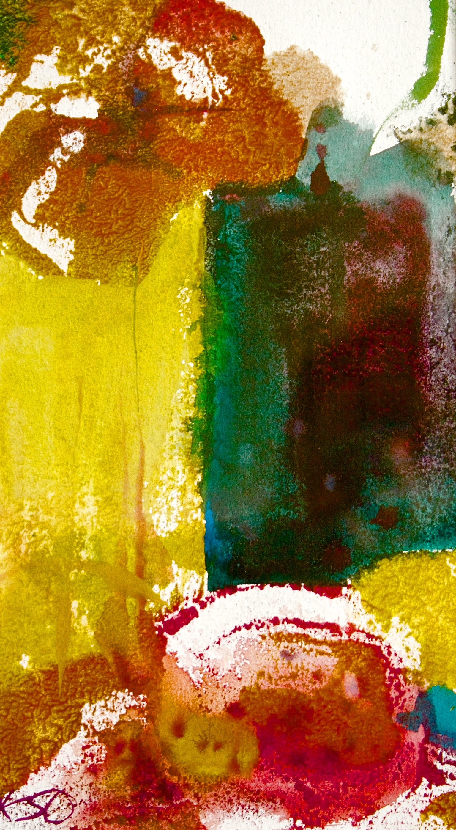 I’ve been experimenting with monoprinting using watercolour/gouache. Gouache being meatier and somewhat cheaper. The image below was done from part of a photo, taking elements and rearranging them. Something about printmaking gives permission for this literalist to be a bit less literal. The flower in the photo was a nasturtium, but looked more like a hippeastrum in the print so went with it. Gum Arabic or some Ecover ( less chemical than Fairy)washing up liquid is added to the paint, just a few drops, which helps it adhere to the sheet of glass/acrylic, and slows down the drying time. Then you add water till it’s the right consistency and proceed to paint your image on the glass. Even with the gum arabic it dries rapidly compared to printing ink, so sometimes I spray the image before applying the paper, sometimes I’ll soak the paper (and blot it) before applying, the end result different with each technique. I’ve been using Fabriano Rosamunda, off white or cream, and rubbing over the back with either a hand or a soft cloth.