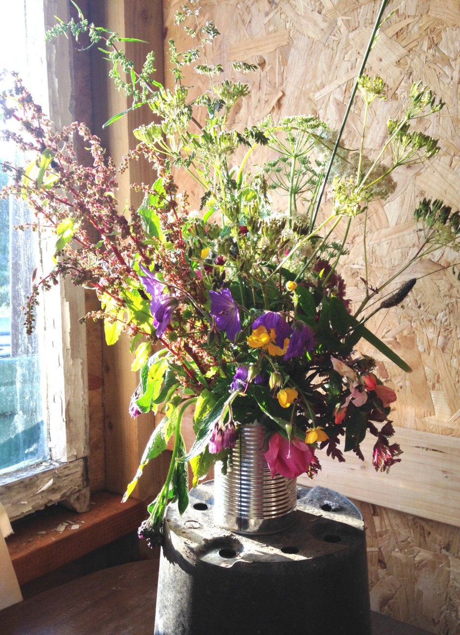 Took a bag of equipment for a sunny day of painting and cultivation at the allotment. I’ve been asked by Artists and Illustrators magazine to do a step by step and thought I should get some practise at remembering to take the photos! As I usually forget. The paintbox was once a White Nights box but over the years has become a mixture of everything from Winsor & Newton to Daniel Smith. The one Russian colour left is their ‘green’ which I love and probably shouldn’t as I don’t know how permanent it is; but very transparent and rich and clean. Easy to warm up with yellows and cool with blues.