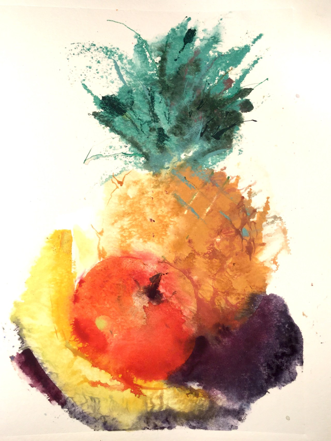 The initial print was done with gouache, mixed with water to the right custardy consistency, and a few drops of gum Arabic added. I have a large sealable acrylic palette with many separate wells which I have over time filled with various mixes and colours; when a mix gets too dirty I replace it with something new and fresh