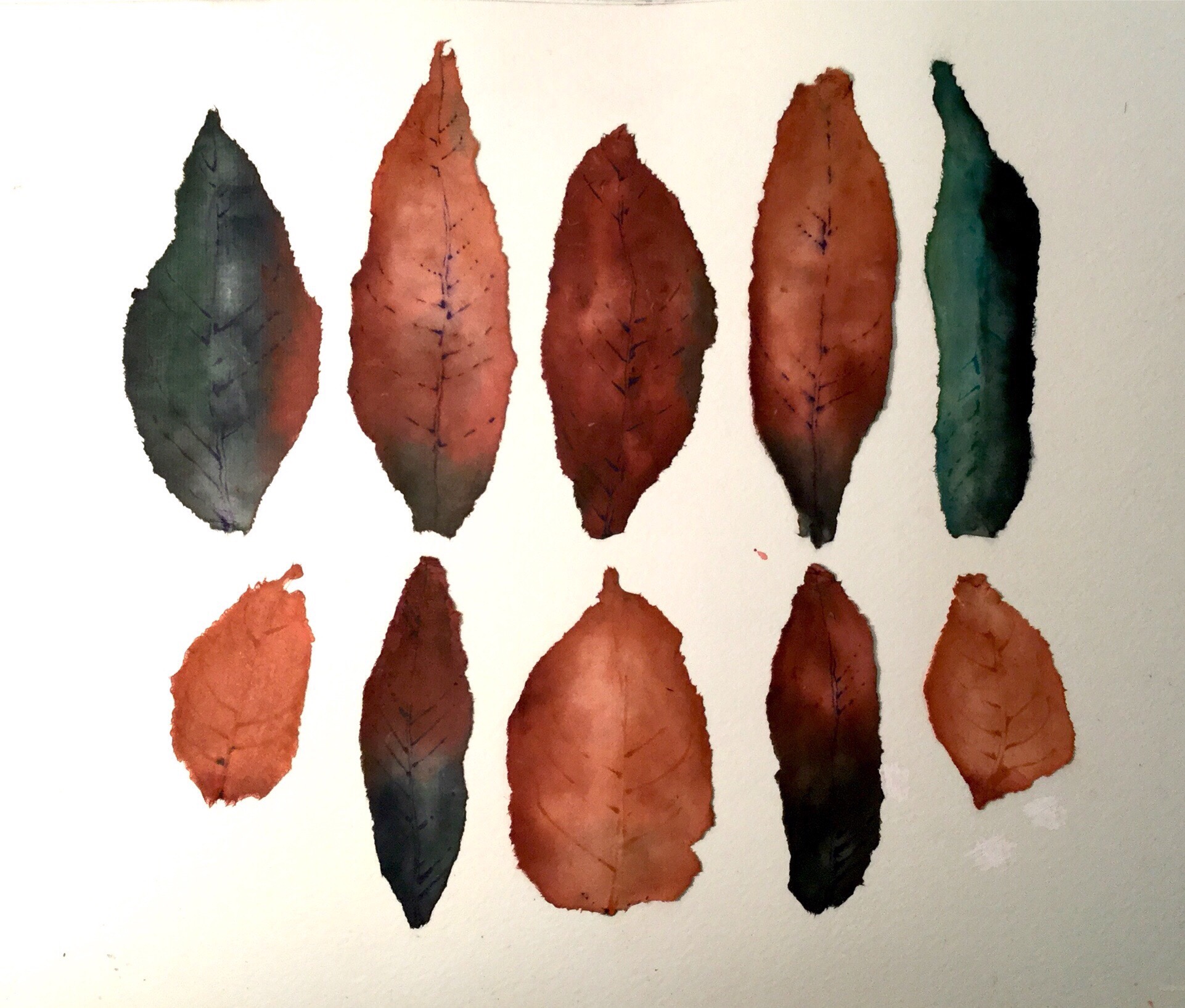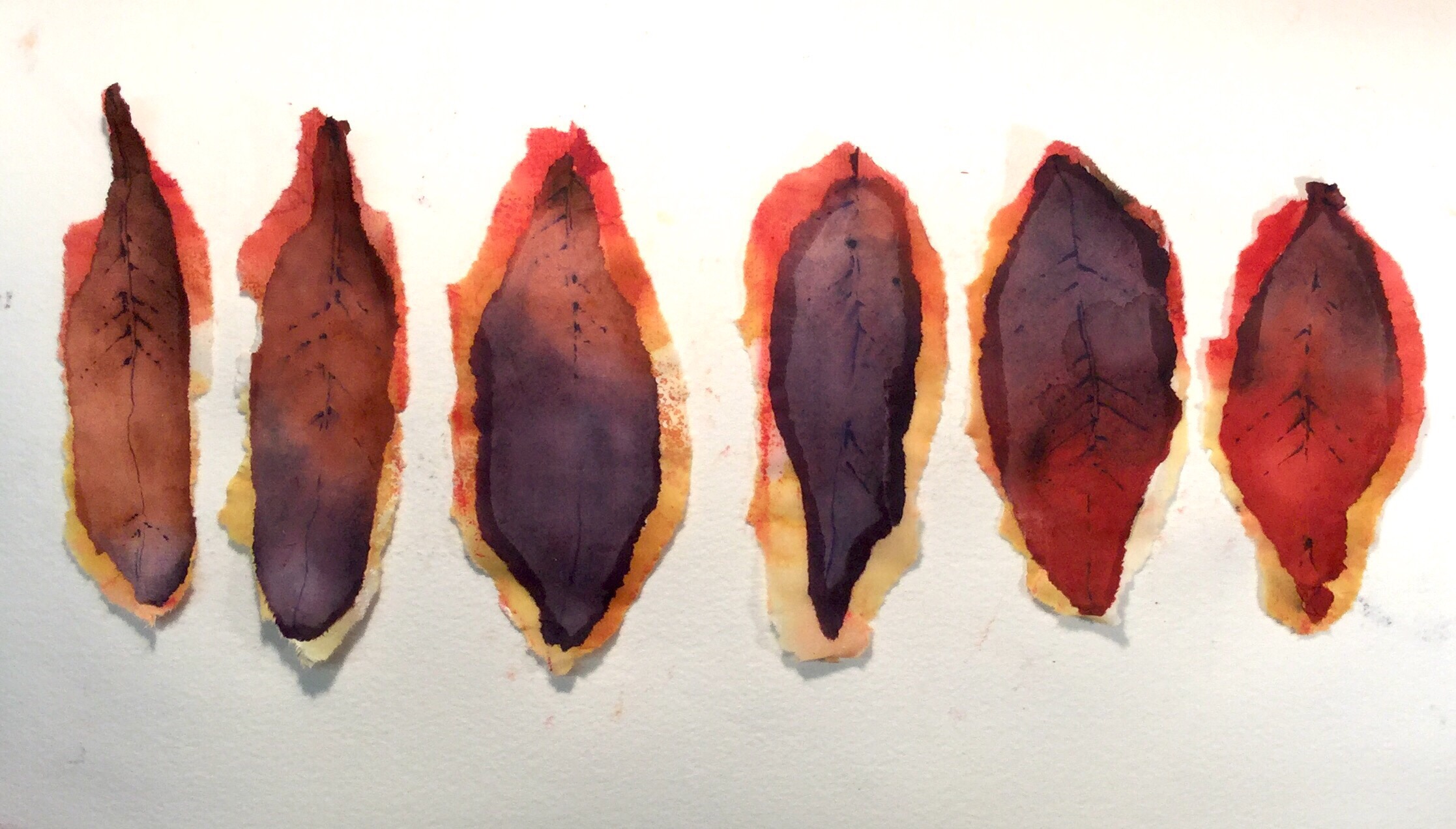 The paler leaves on top were an afterthought, some I had done earlier. Below are a few more, done in much the same way
