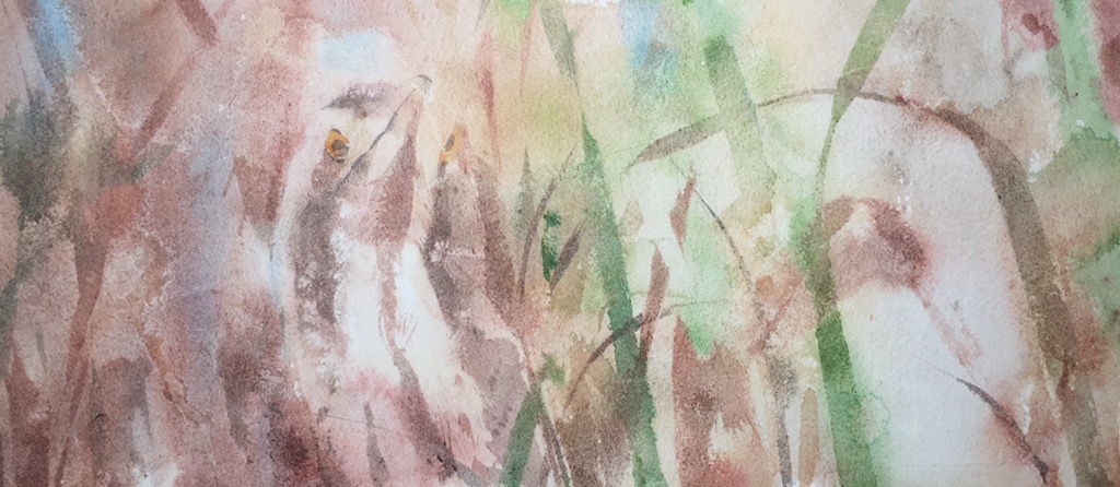 I was asked by Artists & Illustrators to paint a bird for an edition featuring birds (what else!?) and started with this bittern, emerging from the reeds. I’ve had the reference for a long time and always loved the image, the bittern’s exquisite and subtle camouflage, as beautiful as any tiger. The image below, on 200lb Saunders Waterford is the first effort and I was disappointed in the somewhat overworked result so put it aside and painted a marsh harrier for them instead (!)
