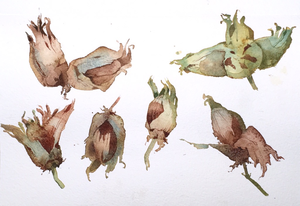 Using a couple of Chinese brushes and a sword liner with transparent red oxide ( a good substitute for burnt sienna) cerulean blue, transparent yellow (PY150) and burnt umber, this took a bit longer than five minutes, but still keeping the execution rapid. Done in the Sennelier concertina sketchbook from Cass Art