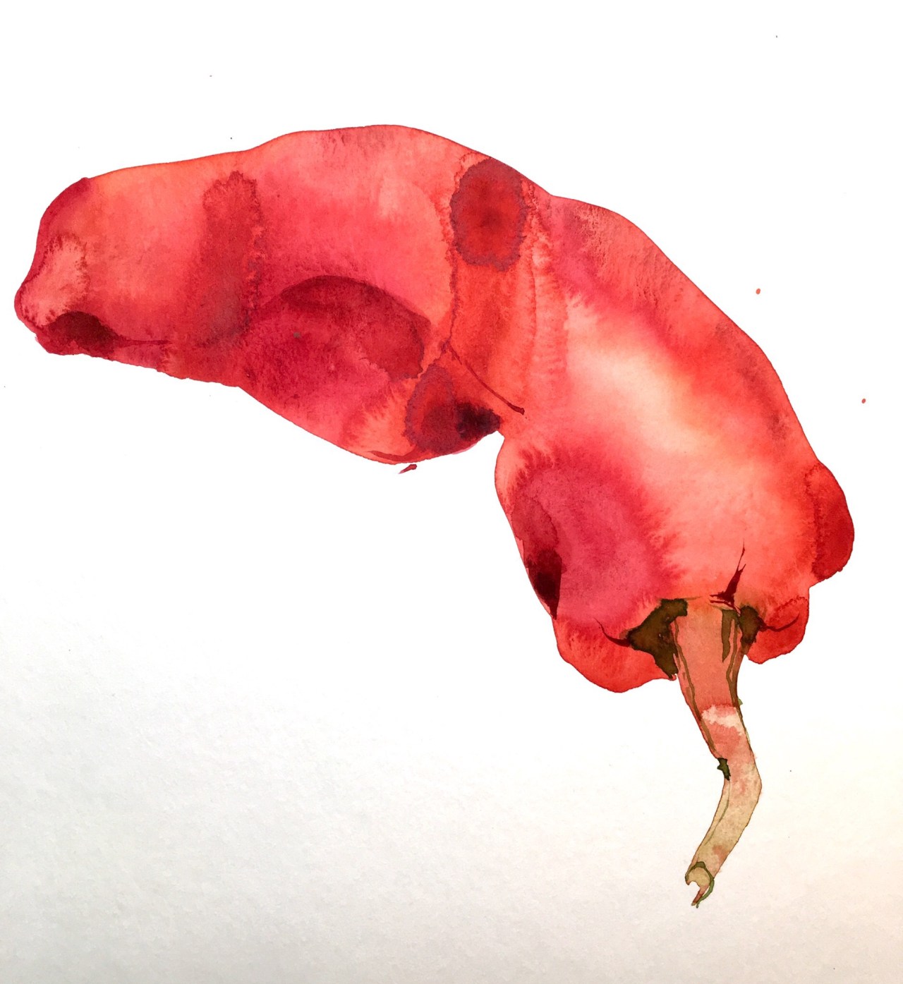 #5MinuteWatercolour Demonstration Romano Pepper. Perylene red (PR178) Information on pigments here handprint.com, transparent pyrrole orange (PO73) I use the Daniel Smith, which is a divine rich saturated deep and transparent orange. I’ve just ordered some Winsor orange, same pigment, to compare; will report back. Alizarin crimson permanent, ultramarine blue and transparent yellow (PY150)